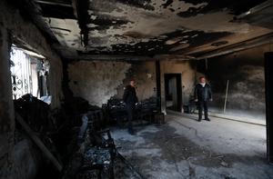 (260323) -- NAPLUSA, 23 marzo, 2026 (Xinhua) -- Palestinos inspeccionan una casa incendiada por colonos israelíes, en la aldea de Deir al-Hatab, en el este de Naplusa, en Cisjordania, el 23 de marzo de 2026. (Xinhua/Ayman Nobani) (rtg) (ah) (ce)