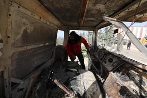 (260121) -- NAPLUSA, 21 enero, 2026 (Xinhua) -- Un palestino inspecciona las secuelas de un incendio provocado por colonos israelíes que dañó vehículos, en la aldea de Awarta, en el sur de Naplusa, en Cisjordania, el 21 de enero de 2026. (Xinhua/Nidal Eshtayeh) (ah) (ra) (vf)