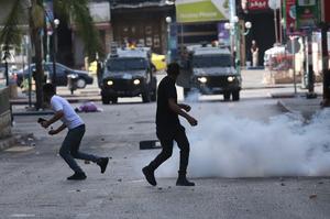 (250828) -- NAPLUSA, 28 agosto, 2025 (Xinhua) -- Imagen del 27 de agosto de 2025 de manifestantes palestinos vistos durante una operación militar israelí, en Naplusa, en el norte de Cisjordania. Las fuerzas de ocupación israelíes han continuado sus incursiones en la ciudad de Naplusa, imponiendo un asedio a su Ciudad Vieja durante casi nueve horas. (Xinhua/Nidal Eshtayeh) (da) (ra) (vf)