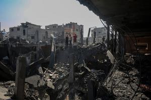 (250705) -- GAZA, 5 julio, 2025 (Xinhua) -- Imagen del 4 de julio de 2025 de palestinos inspeccionando viviendas destruidas tras un ataque aéreo israelí en el campamento de refugiados de al-Shati, en el oeste de la Ciudad de Gaza. (Xinhua/Rizek Abdeljawad) (jg) (rtg) (da)