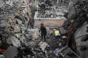 (250424) -- GAZA, 24 abril, 2025 (Xinhua) -- Un hombre palestino inspecciona un edificio de departamentos destruido tras un ataque aéreo israelí, en la Ciudad de Gaza, el 24 de abril de 2025. Al menos 29 palestinos fallecieron el jueves en múltiples ataques aéreos israelíes contra la Franja de Gaza, informó la Defensa Civil del asediado enclave costero. (Xinhua/Rizek Abdeljawad) (da) (ra)