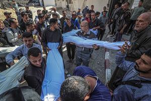 (250427) -- GAZA, 27 abril, 2025 (Xinhua) -- Imagen del 26 de abril de 2025 de palestinos cargando cuerpos de víctimas después de un ataque aéreo israelí, en la Ciudad de Gaza. Al menos 34 palestinos fueron asesinados y docenas de otros resultaron heridos en ataques aéreos llevados a cabo por el Ejército israelí en toda la Franja de Gaza el sábado, dijo la defensa civil de Gaza. (Xinhua/Mahmoud Zaki) (oa) (ah)