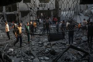 (250627) -- GAZA, 27 junio, 2025 (Xinhua) -- Palestinos se reúnen en un sitio de un ataque aéreo israelí, en la Ciudad de Gaza, el 27 de junio de 2025. Al menos 40 palestinos murieron el viernes por disparos y bombardeos israelíes en toda la Franja de Gaza, informaron fuentes palestinas. (Xinhua/Rizek Abdeljawad) (rtg) (ra) (vf)