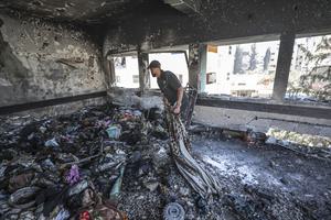 (250627) — GAZA, 27 junio, 2025 (Xinhua) — Un palestino es visto en el interior de una vivienda dañada en un ataque aéreo israelí, en la Ciudad de Gaza, el 27 de junio de 2025. Al menos 40 palestinos murieron el viernes por disparos y bombardeos israelíes en toda la Franja de Gaza, informaron fuentes palestinas. (Xinhua/Mahmoud Zaki) (rtg) (ra) (vf)