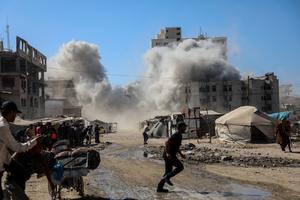 MEDIO ORIENTE-CIUDAD DE GAZA-ATAQUE AEREO-DEMOLICION DE EDIFICIO