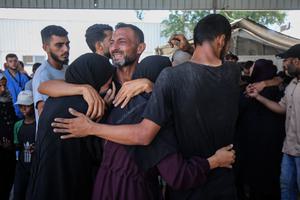 (250620) -- CIUDAD DE GAZA, 20 junio, 2025 (Xinhua) -- Palestinos se lamentan por las víctimas asesinadas en un ataque aéreo israelí en el interior del hospital Al-Shifa, en el centro de la Ciudad de Gaza, el 20 de junio de 2025. (Xinhua/Rizek Abdeljawad) (rtg) (ra) (ce)