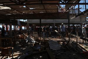 (250630) -- GAZA, 30 junio, 2025 (Xinhua) -- Personas se reúnen en una cafetería frente al mar destruida en un ataque aéreo israelí, en la Ciudad de Gaza, el 30 de junio de 2025. El número de muertos por un ataque aéreo israelí contra una cafetería frente al mar en la Ciudad de Gaza ha aumentado a 34, frente a un informe anterior de 21, dijeron el lunes fuentes médicas y de seguridad palestinas. (Xinhua/Rizek Abdeljawad) (rtg) (oa) (ce)