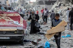 (250404) — GAZA, 4 abril, 2025 (Xinhua) — Personas son vistas en una escuela convertida en refugio después de un ataque aéreo israelí, en la Ciudad de Gaza, el 4 de abril de 2025. Al menos 29 palestinos murieron y más de 100 resultaron heridos en un ataque israelí contra la escuela Dar Al-Arqam en el este de la Ciudad de Gaza, informó el jueves la oficina de prensa de Hamas. (Xinhua/Rizek Abdeljawad) (rtg) (ra) (ce)