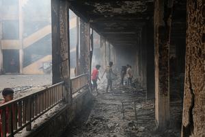 (250423) -- GAZA, 23 abril, 2025 (Xinhua) -- Niños palestinos son vistos en una escuela tras un ataque aéreo israelí, en la Ciudad de Gaza, el 23 de abril de 2025. La agencia de seguridad interna israelí Shin Bet y el Ejército informaron el miércoles que un mortífero ataque aéreo nocturno contra una escuela que albergaba a familias desplazadas en el norte de Gaza iba dirigido contra militantes. Las autoridades sanitarias de Gaza informaron que el ataque causó la muerte de al menos 10 personas y provocó incendios en tiendas de campaña y aulas de la escuela. (Xinhua/Rizek Abdeljawad) (jg) (da) (vf)