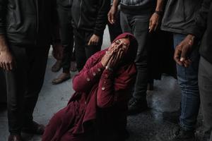 (250314) -- GAZA, 14 marzo, 2025 (Xinhua) -- Una palestina se lamenta sobre víctimas asesinadas por el Ejército israelí, en un hospital, en la Ciudad de Gaza, el 14 de marzo de 2025. Al menos cuatro palestinos murieron el viernes en un bombardeo israelí, en el barrio de Zeitoun, en el sureste de la Ciudad de Gaza, de acuerdo con fuentes locales. (Xinhua/Rizek Abdeljawad) (rtg) (ra) (vf)