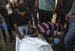 (250624) -- GAZA, 24 junio, 2025 (Xinhua) -- Palestinos se lamentan por una víctima asesinada en un sitio de distribución de ayuda cerca del corredor Netzarim en el centro de la Franja de Gaza, en un hospital, en la Ciudad de Gaza, el 24 de junio de 2025. Al menos 70 palestinos murieron el martes por disparos y ataques aéreos israelíes en la Franja de Gaza, un número significativo de ellos al parecer habrían muerto mientras esperaban ayuda humanitaria, según fuentes palestinas. (Xinhua/Mahmoud Zaki) (oa) (ra) (ce)