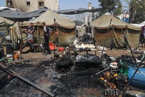 (250421) -- GAZA, 21 abril, 2025 (Xinhua) -- Un hombre es consolado por otros en el sitio de un ataque aéreo israelí, en la Ciudad de Gaza, el 21 de abril de 2025. El Ejército de Israel informó el lunes que llevó a cabo más de 200 ataques aéreos contra la Franja de Gaza en los últimos tres días, acabando con la vida de un miembro de la Yihad Islámica. (Xinhua/Rizek Abdeljawad) (rtg) (ah) (ce)