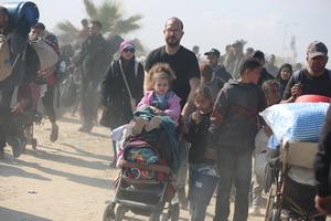 (250127) -- GAZA, 27 enero, 2025 (Xinhua) -- Personas desplazadas son vistas de camino a sus hogares, en la Ciudad de Gaza, el 27 de enero de 2025. Decenas de miles de palestinos comenzaron a regresar el lunes a sus hogares en la Ciudad de Gaza y las partes norte del enclave costero después de 15 meses de desplazamiento forzado. (Xinhua/Abdul Rahman Salama) (oa) (ah) (ce)