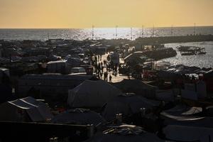 (250521) -- GAZA, 21 mayo, 2025 (Xinhua) -- Personas desplazadas son vistas en un refugio temporal en la zona del puerto marítimo del oeste de la Ciudad de Gaza, el 21 de mayo de 2025. El presidente palestino, Mahmoud Abbas, pidió el miércoles a la comunidad internacional que tome medidas inmediatas en respuesta a la situación "catastrófica y trágica" en la Franja de Gaza. (Xinhua/Rizek Abdeljawad) (ra) (vf)