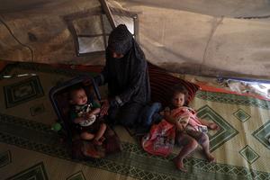 (250521) -- GAZA, 21 mayo, 2025 (Xinhua) -- Personas desplazadas son vistas dentro de una tienda de campaña en la zona del puerto marítimo del oeste de la Ciudad de Gaza, el 21 de mayo de 2025. El presidente palestino, Mahmoud Abbas, pidió el miércoles a la comunidad internacional que tome medidas inmediatas en respuesta a la situación "catastrófica y trágica" en la Franja de Gaza. (Xinhua/Rizek Abdeljawad) (ra) (vf)