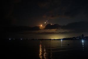 (250615) -- GAZA, 15 junio, 2025 (Xinhua) -- Imagen del 14 de junio de 2025 de rastros de misiles vistos desde la Ciudad de Gaza durante los ataques con misiles de Irán en contra de Israel. El Cuerpo de los Guardianes de la Revolución Islámica (IRGC, por sus siglas en inglés) lanzó la noche del sábado una "operación ofensiva combinada a gran escala" contra Israel, involucrando un número significativo de misiles y drones, reportó el medio oficial de noticias del IRGC, Sepah News. (Xinhua/Rizek Abdeljawad) (rtg) (da)