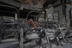 MEDIO ORIENTE-CIUDAD DE GAZA-UNIVERSIDAD DAÑADA-REFUGIO