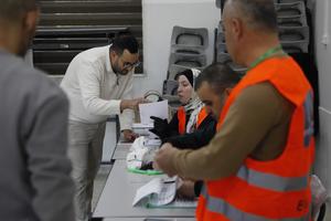 (260426) -- HEBRON, 26 abril, 2026 (Xinhua) -- Imagen del 25 de abril de 2026 de palestinos vistos en un colegio electoral, en la ciudad cisjordana de Hebrón. Miles de palestinos votaron el sábado en las primeras elecciones municipales celebradas en Gaza en 20 años, aunque el proceso se limitó a la ciudad de Deir al-Balah en la parte central del enclave, junto con elecciones locales en toda Cisjordania. (Xinhua/Mamoun Wazwaz) (ah) (da) (ce)