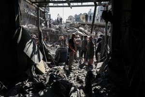(250911) -- GAZA, 11 septiembre, 2025 (Xinhua) -- Palestinos inspeccionan el daño de varias viviendas en el interior del campamento de refugiados Shati después de un ataque aéreo israelí, en el oeste de la Ciudad de Gaza, el 11 de septiembre de 2025. (Xinhua/Rizek Abdeljawad) (rtg) (ra)