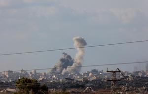 (250925) -- JERUSALEN, 25 septiembre, 2025 (Xinhua) -- Humo se eleva de edificios dañados en la Ciudad de Gaza visto desde el sur de la frontera israelí, el 25 de septiembre de 2025. (Xinhua/Gil Cohen Magen) (rtg) (ra) (ce)