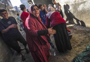 (250522) -- GAZA, 22 mayo, 2025 (Xinhua) -- Imagen del 21 de mayo de 2025 de palestinos reaccionando tras un ataque aéreo israelí en el campamento de refugiados de Jabalia, en el norte de la Franja de Gaza. Mahmoud Basal, portavoz de la Defensa Civil de Gaza, dijo el miércoles a Xinhua que la aviación israelí lanzó decenas de ataques contra Gaza desde el amanecer y que mató al menos a 56 palestinos en todo el territorio. (Xinhua/Mahmoud Zaki) (jg) (ah) (vf)