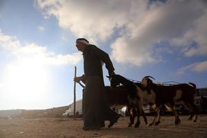 (250603) -- HEBRÓN, 3 junio, 2025 (Xinhua) -- Un palestino se dirige a un mercado de ganado previo al festival de Eid al-Adha, en la ciudad cisjordana de Hebrón, el 3 de junio de 2025. (Xinhua/Mamoun Wazwaz) (oa) (ra) (ce)
