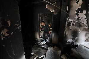 (250304) -- JENIN, 4 marzo, 2025 (Xinhua) -- Un niño es visto dentro de una vivienda destruida por una explosión en una operación militar israelí, en la ciudad cisjordana de Jenin, el 4 de marzo de 2025. El Ejército israelí mató el martes a un alto comandante de las Brigadas Qassam y a otro palestino durante una operación militar a gran escala en el barrio oriental de la norteña ciudad cisjordana de Jenin. (Xinhua/Nidal Eshtayeh) (jg) (ra) (ce)