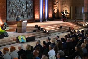 (250423) -- JERUSALEN, 23 abril, 2025 (Xinhua) -- Personas asisten a la conmemoración del Día del Recuerdo de los Mártires y Héroes del Holocausto, en Yad Vashem, en Jerusalén, el 23 de abril de 2025. Israel comenzó el miércoles a conmemorar su anual Día del Recuerdo de los Mártires y Héroes del Holocausto con una ceremonia oficial de colocación de una corona de flores aquí en el monumento conmemorativo del Holocausto del país, Yad Vashem. (Xinhua/Chen Junqing) (ah) (ra)