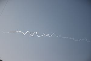 (250619) -- JERUSALEN, 19 junio, 2025 (Xinhua) -- Imagen del 18 de junio de 2025 de la estela de humo de un misil interceptor dirigido hacia misiles lanzados desde Irán vista sobre el cielo de Jerusalén. Varios misiles iraníes fueron disparados hacia el centro de Israel el miércoles por la noche, cuando el conflicto entre ambos países entró en su sexto día. El ejército israelí emitió un comunicado en el que dijo que sus sistemas de defensa aérea están en operación para interceptar un nuevo ataque con misiles lanzado desde Irán, e instó a los residentes a entrar en refugios. (Xinhua/Jamal Awad) (rtg) (ra) (vf)