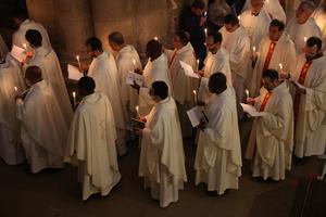 (250418) -- JERUSALEN, 18 abril, 2025 (Xinhua) -- Imagen del 17 de abril de 2025 de monjes y frailes cristianos caminando en procesión en la ceremonia católica del Lavado de Pies durante la Semana Santa, en la Iglesia del Santo Sepulcro, en Jerusalén. (Xinhua/Jamal Awad) (oa) (ra) (ce)
