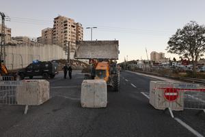 (251001) -- JERUSALEN, 1 octubre, 2025 (Xinhua) -- Policías instalan un bloqueo temporal en carreteras para restringir el tráfico hacia Jerusalén Occidental previo al Yom Kippur, en el este de Jerusalén, el 1 de octubre de 2025. Yom Kippur, el Día de la Expiación judío, es un día solemne de reflexión y ayuno, en el que la mayoría de los automóviles no pueden circular por las carreteras. Este año, Yom Kippur comienza el 1 de octubre y termina el 2 de octubre. (Xinhua/Jamal Awad) (ah) (ce)