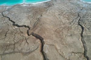 (250330) — JERUSALEN, 30 marzo, 2025 (Xinhua) — Vista aérea tomada con un dron el 29 de marzo de 2025 de la línea costera de la parte norte del Mar Muerto, a unos 30 kilómetros al este de Jerusalén. El descenso del nivel de las aguas del Mar Muerto ha provocado la erosión salina subterránea, causando el colapso generalizado del suelo y la formación de sumideros a lo largo de la costa. (Xinhua/Gil Cohen Magen) (oa) (ah)