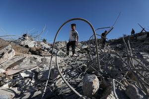 (250710) -- NAPLUSA, 10 julio, 2025 (Xinhua) -- Imagen del 9 de julio de 2025 de palestinos inspeccionando los escombros de una vivienda demolida por una excavadora israelí, en el poblado de Rujeib, en el este de la ciudad cisjordana de Naplusa. (Xinhua/Nidal Eshtayeh) (rtg) (ra) (vf)