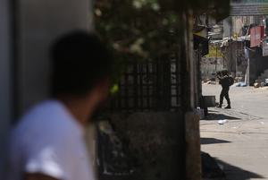 (250619) -- NAPLUSA, 19 junio, 2025 (Xinhua) -- Un miembro de las fuerzas israelíes es visto durante una operación militar en el campamento de refugiados de Balata, en el este de Naplusa, en Cisjordania, el 19 de junio de 2025. (Xinhua/Nidal Eshtayeh) (rtg) (ra) (ce)