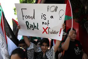 (250723) — NAPLUSA, 23 julio, 2025 (Xinhua) — Imagen del 22 de julio de 2025 de palestinos participando en una manifestación contra la guerra en curso en la Franja de Gaza, en la ciudad de Naplusa, en el norte de Cisjordania. (Xinhua/Ayman Nobani) (jg) (da) (vf)