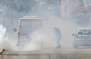 (250521) -- NAPLUSA, 21 mayo, 2025 (Xinhua) -- Imagen del 20 de mayo de 2025 de un hombre corriendo para cubrirse durante una operación militar en el campamento de refugiados de Askar, en el este de Naplusa, en el norte de Cisjordania. (Xinhua/Nidal Eshtayeh) (ah) (vf)