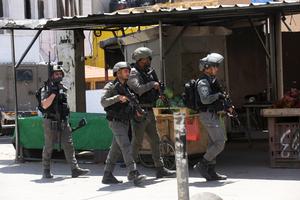 (250521) -- NAPLUSA, 21 mayo, 2025 (Xinhua) -- Imagen del 20 de mayo de 2025 de miembros de las fuerzas israelíes vistos durante una operación militar en el campamento de refugiados de Askar, en el este de Naplusa, en el norte de Cisjordania. (Xinhua/Nidal Eshtayeh) (ah) (ra) (vf)