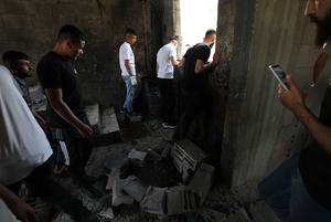 (250509) -- NAPLUSA, 9 mayo, 2025 (Xinhua) -- Palestinos revisan los daños en el interior de un edificio tras un ataque israelí, en Naplusa, en el norte de Cisjordania, el 9 de mayo de 2025. Combatientes israelíes abatieron el viernes al líder del movimiento Yihad Islámica de Jenin, en el norte de Cisjordania, dijeron las Fuerzas de Defensa de Israel (FDI) y la Policía de Israel en un comunicado conjunto. El comunicado añadió que fue localizado y abatido en la ciudad de Naplusa en una operación conjunta de las FDI, la Unidad Nacional Antiterrorista de la Policía de Israel y la Agencia de Seguridad de Israel, o Shin Bet. (Xinhua/Ayman Nobani) (jg) (da) (vf)