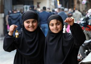 (250303) -- NAPLUSA, 3 marzo, 2025 (Xinhua) -- Imagen del 2 de marzo de 2025 de niñas mostrando linternas miniatura en un mercado durante el mes sagrado musulmán del Ramadán, en la ciudad cisjordana de Naplusa. (Xinhua/Ayman Nobani) (rtg) (ah) (vf)