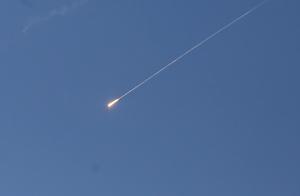 (250619) -- NAPLUSA, 19 junio, 2025 (Xinhua) -- Un rastro de misil es visto desde la ciudad de Naplusa, en el norte de Cisjordania, durante los ataques con misiles de Irán contra Israel, el 19 de junio de 2025. Irán disparó la tarde del jueves una nueva oleada de misiles contra el norte de Israel, informó el ejército israelí cuando las hostilidades entre ambos países entraron en su sexto día. (Xinhua/Nidal Eshtayeh) (rtg) (ra) (ce)
