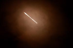 (250618) -- NAPLUSA, 18 junio, 2025 (Xinhua) -- Un rastro de misil es visto desde la ciudad de Naplusa, en el norte de Cisjordania, durante los ataques con misiles de Irán contra Israel, el 18 de junio de 2025. (Xinhua/Ayman Nobani) (ra) (ce)