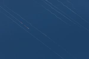 (250622) -- NAPLUSA, 22 junio, 2025 (Xinhua) -- Rastros de misiles son vistos desde la ciudad de Naplusa, en el norte de Cisjordania, durante los ataques con misiles iraníes en contra de Israel, el 22 de junio de 2025. (Xinhua/Ayman Nobani) (rtg) (da)