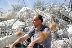 (250429) -- RAMALLAH, 29 abril, 2025 (Xinhua) -- Un palestino se sienta entre los escombros de un edificio demolido por excavadoras israelíes, en la aldea de Qibya, en el oeste de la ciudad cisjordana de Ramallah, el 29 de abril de 2025. (Xinhua/Ayman Nobani) (jg) (ra) (vf)