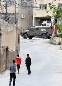 (250515) -- TAMMUN, 15 mayo, 2025 (Xinhua) -- Un vehículo militar israelí es visto durante una incursión, en el poblado cisjordano de Tammun, el 15 de mayo de 2025. Las fuerzas israelíes mataron a cinco palestinos durante una incursión en Tammun el jueves, dijo el Ejército, describiendo a los muertos como militantes involucrados en lo que llamó "actividad terrorista significativa". (Xinhua/Ayman Nobani) (jg) (ah) (ce)