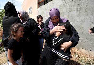 (250515) -- TAMMUN, 15 mayo, 2025 (Xinhua) -- Palestinas se lamentan durante el funeral del palestino, Saher Bsharat, en el poblado cisjordano de Tammun, el 15 de mayo de 2025. Las fuerzas israelíes mataron a cinco palestinos durante una incursión en Tammun el jueves, dijo el Ejército, describiendo a los muertos como militantes involucrados en lo que llamó "actividad terrorista significativa". (Xinhua/Ayman Nobani) (jg) (ah) (ce)