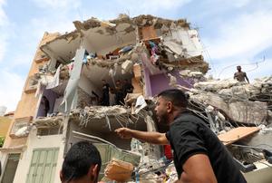 (250515) -- TAMMUN, 15 mayo, 2025 (Xinhua) -- Palestinos inspeccionan los escombros de un edificio demolido tras una operación israelí, en el poblado cisjordano de Tammun, el 15 de mayo de 2025. Las fuerzas israelíes mataron a cinco palestinos durante una incursión en Tammun el jueves, dijo el Ejército, describiendo a los muertos como militantes involucrados en lo que llamó "actividad terrorista significativa". (Xinhua/Ayman Nobani) (jg) (ah) (ce)