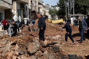 (250214) — TUBAS, 14 febrero, 2025 (Xinhua) — Palestinos cruzan una calle destruida en una operación militar israelí en el campamento de refugiados de Al-Fara’a, en la ciudad cisjordana de Tubas, el 14 de febrero de 2025. «Hay una gran destrucción en el campamento, la infraestructura ha sido destruida y las casas han sido explotadas, y hay casas que no son aptas para ser habitadas», dijo el miércoles en un comunicado el Comité Popular de Servicios del campamento de refugiados de Al-Fara’a en Tubas, señalando que el campamento se ha quedado sin calles después de que fueron destruidas. (Xinhua/Ayman Nobani) (jg) (da) (vf)
