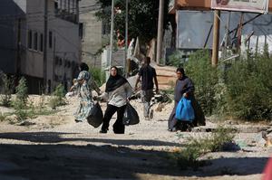 (250707) -- TULKARM, 7 julio, 2025 (Xinhua) -- Imagen del 6 de julio de 2025 de palestinos desplazados cargando sus pertenencias vistos en el campamento de refugiados de Tulkarm, en el norte de Cisjordania. A los palestinos desplazados se les permitió regresar a buscar sus pertenencias después de que el Ejército israelí anunciara la demolición de casas aquí. (Xinhua/Nidal Eshtayeh) (oa) (ah) (vf)