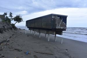 (250619) -- ACAPULCO, 19 junio, 2025 (Xinhua) -- Imagen del 19 de junio de 2025 de un contenedor dañado en una playa durante el paso del huracán Erick, en Acapulco, estado de Guerrero, en el sur México. El huracán Erick ha provocado afectaciones relevantes en infraestructura vial, hospitales y servicios básicos durante su paso por el sur de México, informó el jueves la presidenta Claudia Sheinbaum, quien subrayó que hasta el momento no se reporta ninguna pérdida humana. (Xinhua/Str) (jg) (da) (ce)