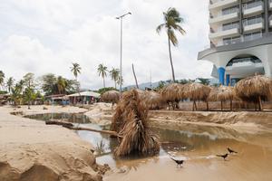(250618) -- ACAPULCO, 18 junio, 2025 (Xinhua) -- Imagen del 18 de junio de 2025 de una palmera caída tras los fuertes vientos previo a la llegada del huracán Erick, en Acapulco, estado de Guerrero, en el sur México. El huracán Erick continúa intensificándose con rapidez frente a las costas del sur de México y alcanzó el miércoles la categoría 2 en la escala Saffir-Simpson, con vientos sostenidos de 155 kilómetros por hora y rachas de hasta 195, informó el Servicio Meteorológico Nacional de México. (Xinhua/Franyeli García) (dp) (vf)